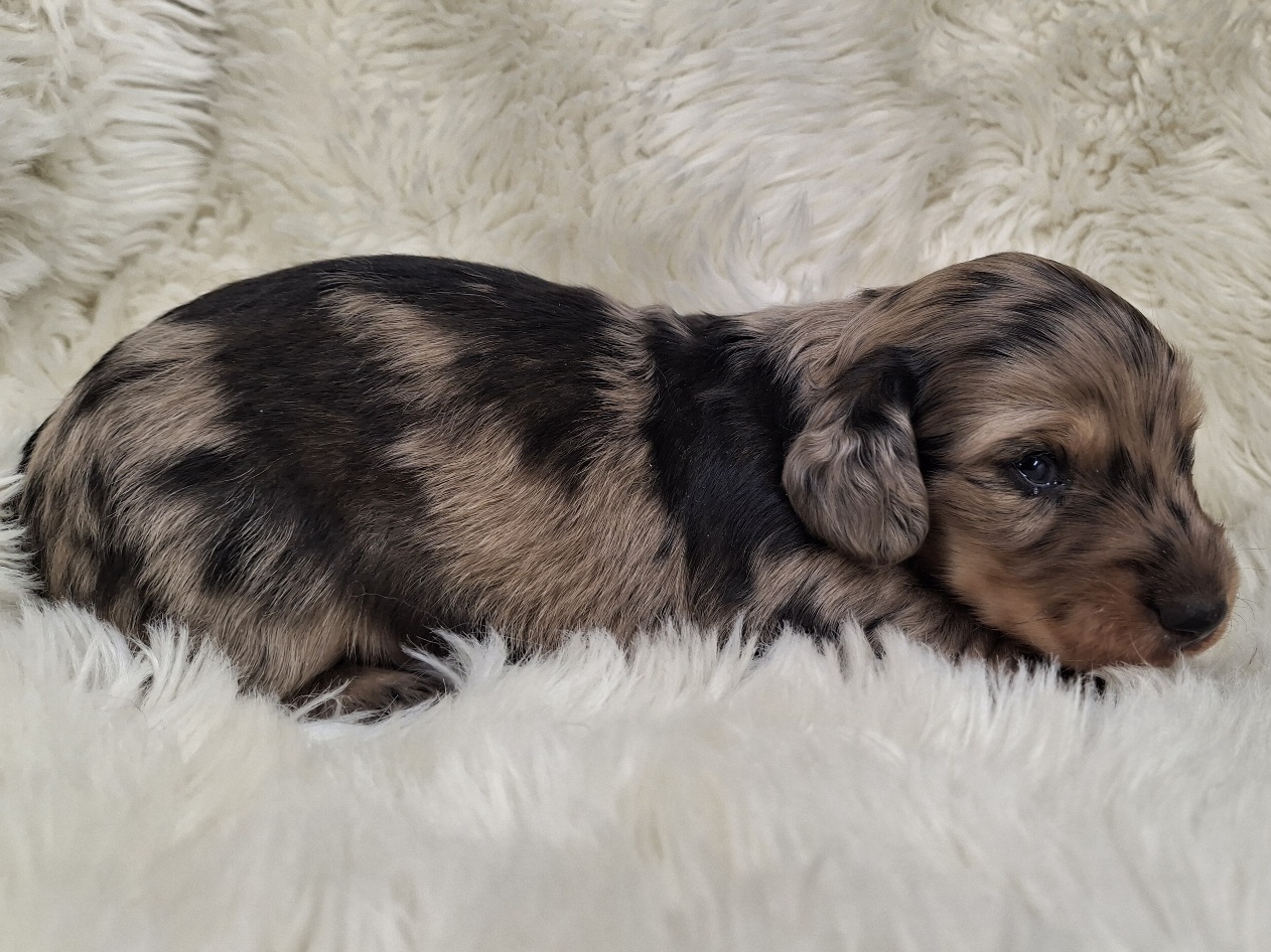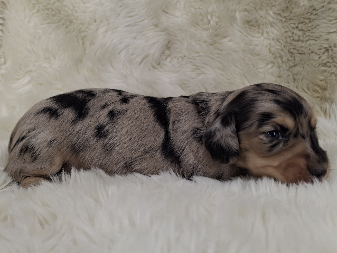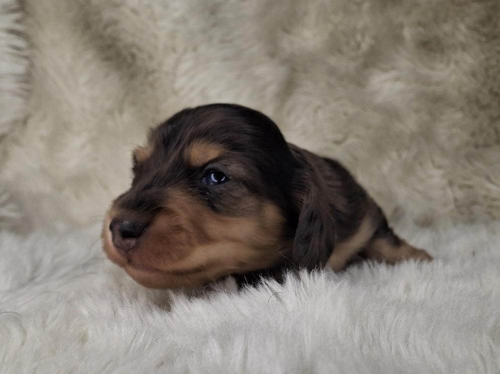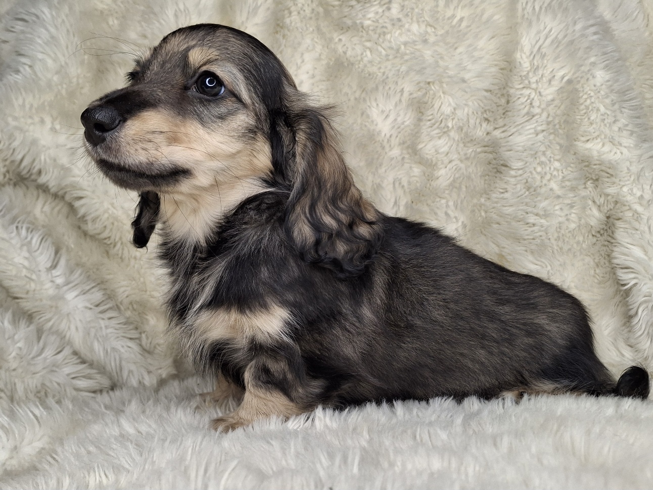 We specialize in breeding Mini (Adult weight 10-13 lbs) and Tweeny (Adult weight 14-18 lbs) dachshunds, offering a variety of long-haired, smooth-coated, and English cream long-haired puppies in most patterns and colors. Our dedicated breeding practices ensure that each puppy is healthy, well-socialized, and a perfect addition to your family.