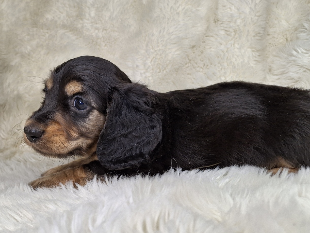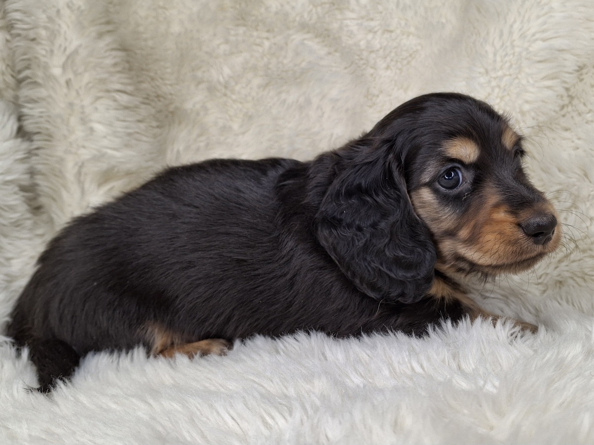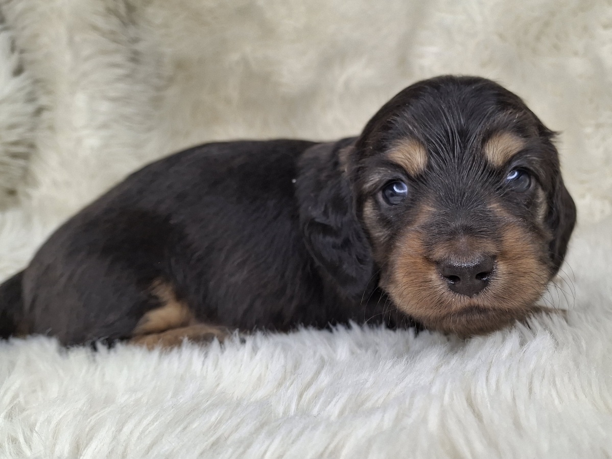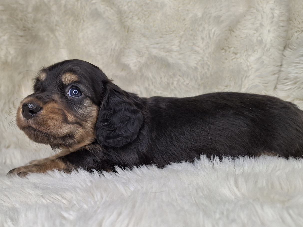 This beautiful Male Black & Cream Longhaired puppy will be ready to go to it's new home anytime starting on Friday, December 5, 2025.