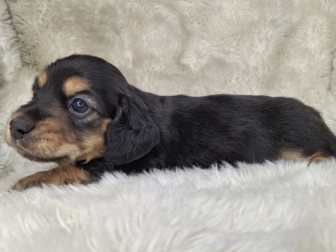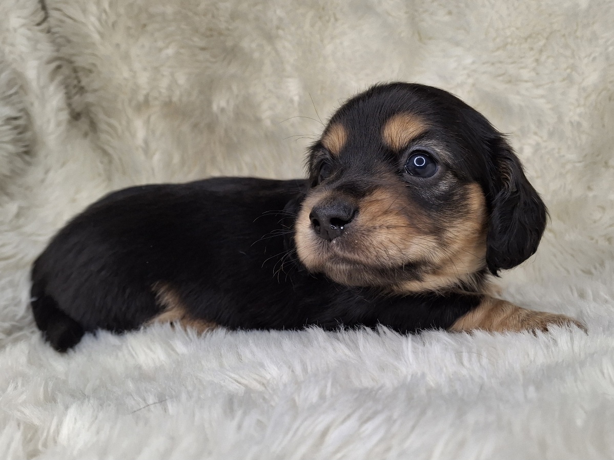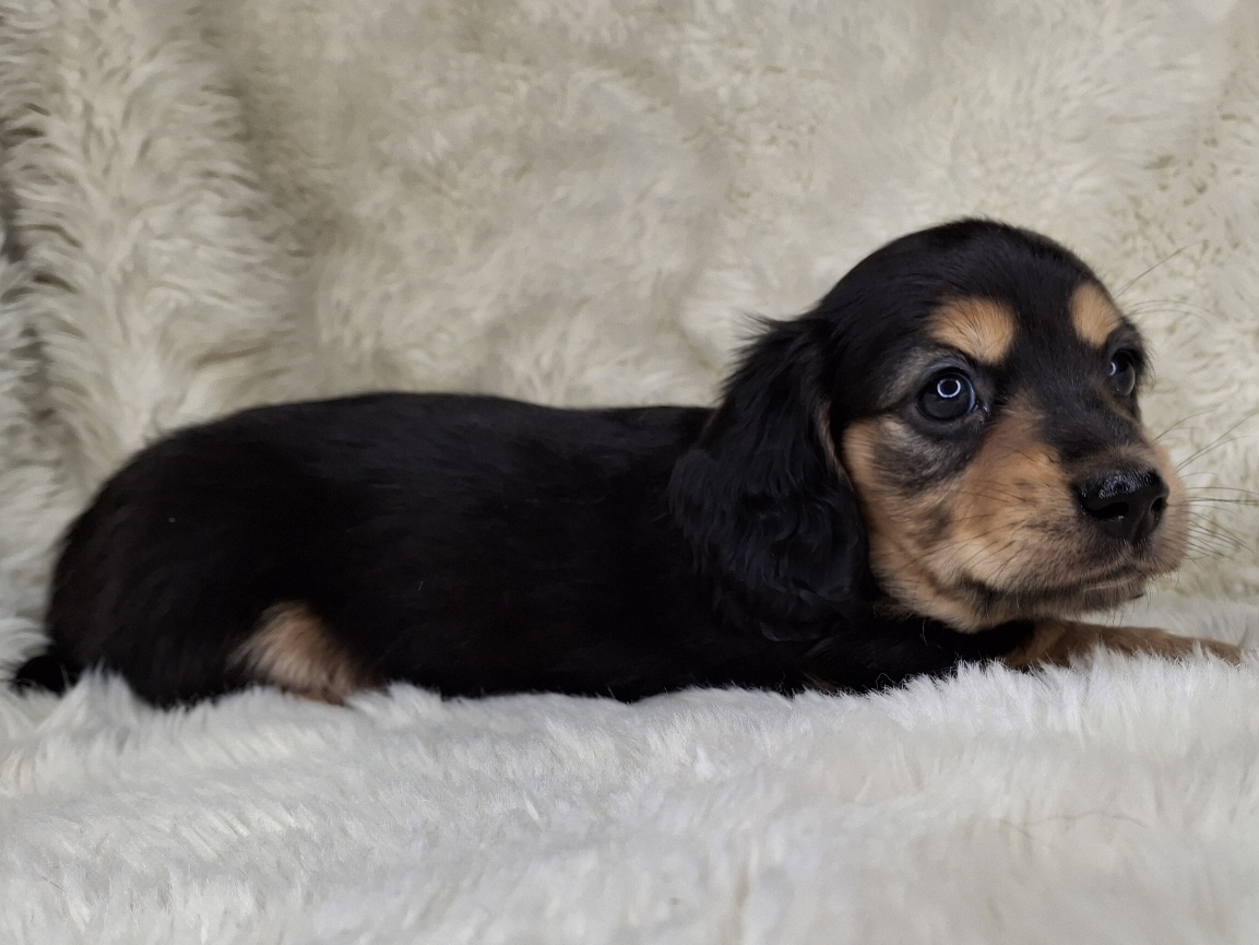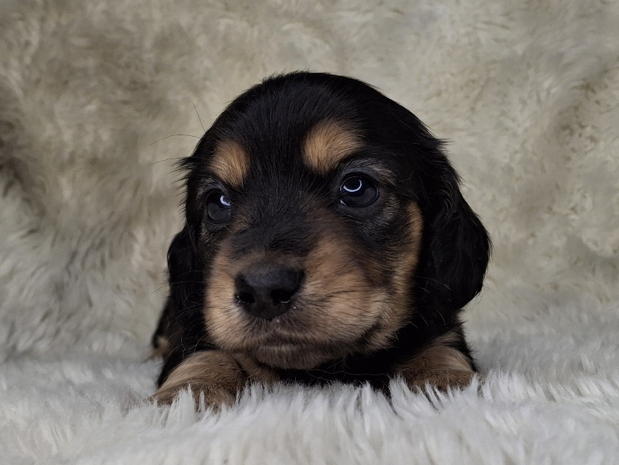 Contact Us For This Black & Cream Longhaired Puppy!