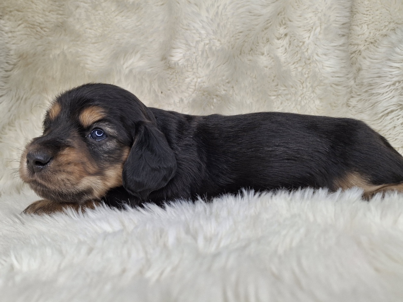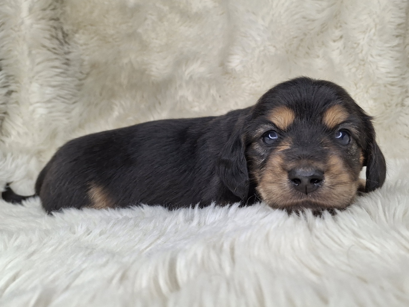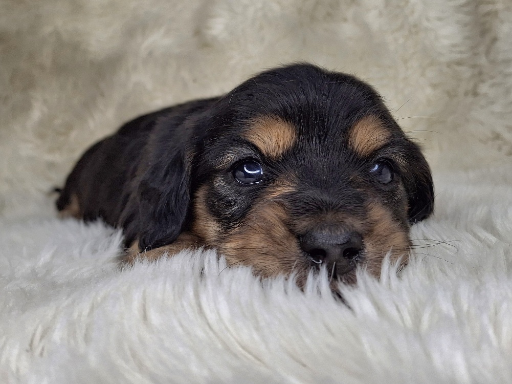 Contact Us For This Black & Cream Longhaired Puppy!