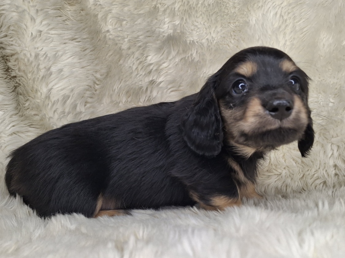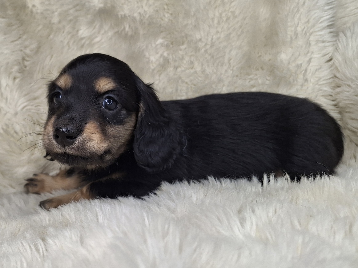 This beautiful Male Black & Cream Longhaired puppy will be ready to go to it's new home anytime starting on Tuesday, April 28, 2026.