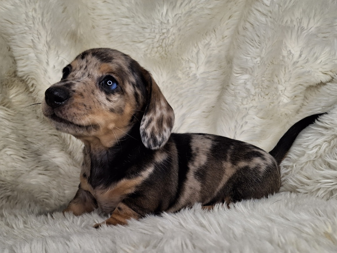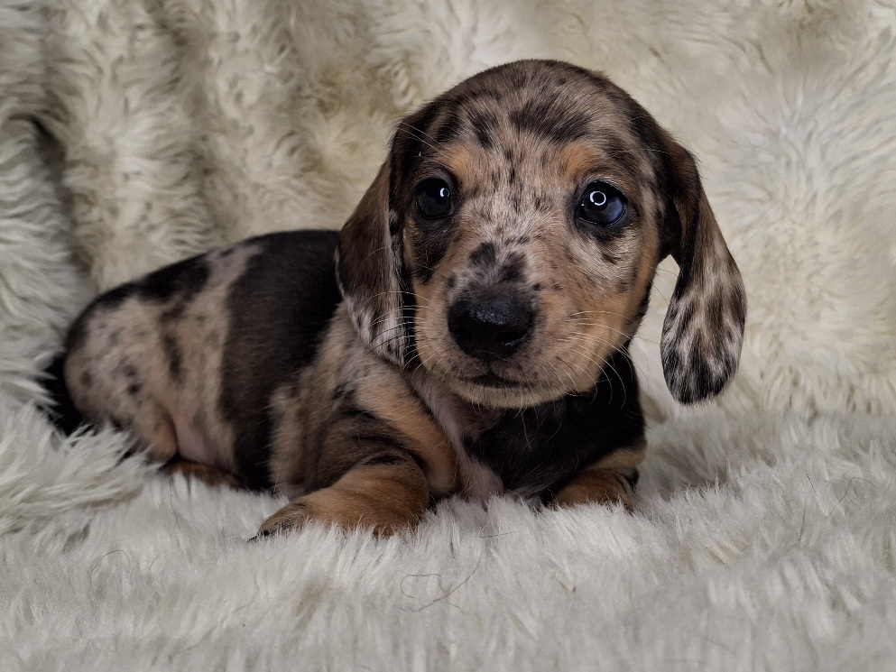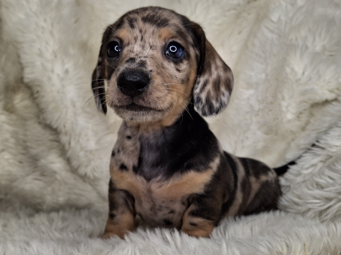 This beautiful Male Black & Tan Dapple Smooth puppy will be ready to go to it's new home anytime starting on Monday, February 23, 2026.