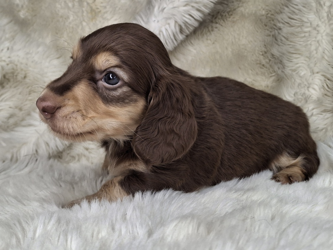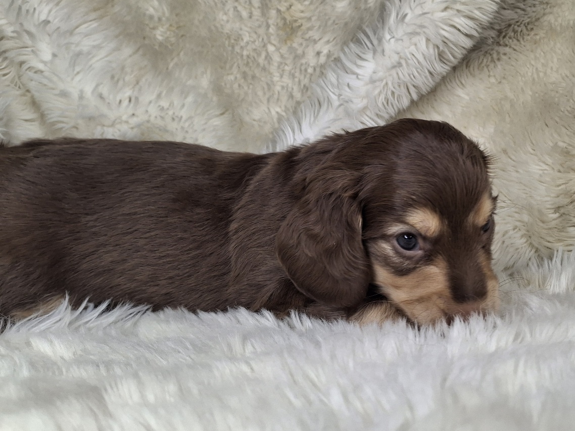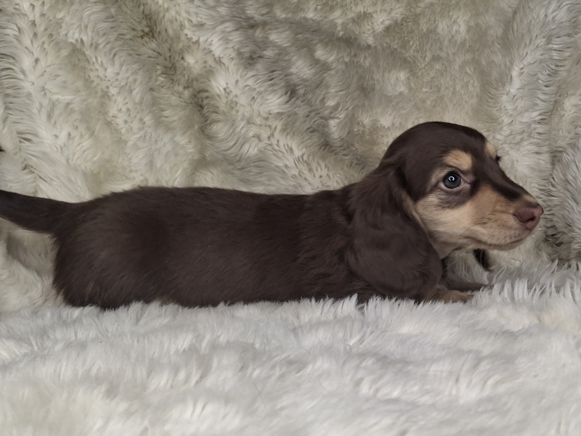 This beautiful Male Chocolate & Cream Longhaired puppy will be ready to go to it's new home anytime starting on Thursday, March 12, 2026.